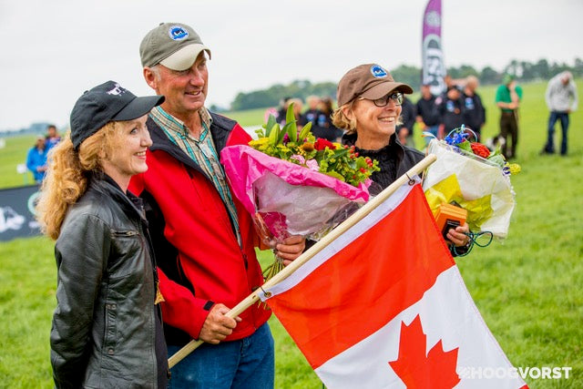 Joanne McHardy of Logan Whistles on the left presenting awards to the Canadian Team members at World Trial 2017, Holland.